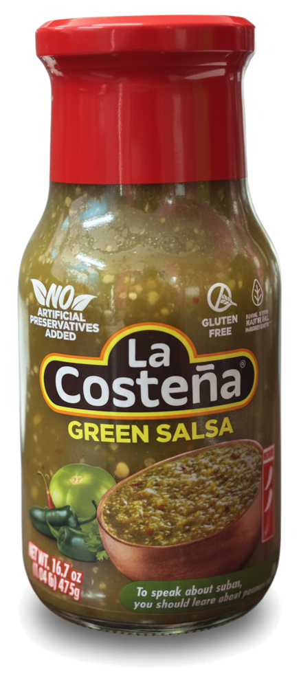 La Costeña Salsa Verde (475g) is a popular Mexican green sauce made with tomatillos, cilantro, and mild green chilies, offering a tangy, slightly spicy flavor. It’s commonly used to complement tacos, grilled meats, or as a dip for chips. The sauce’s smooth texture and vibrant green color make it a favorite for a variety of Mexican dishes.